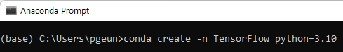 전 포스팅에서 필자는 tensorflow-gpu-2.10.0이 python 3.7~3.10을 요구했으므로 3.10을 입력했다.